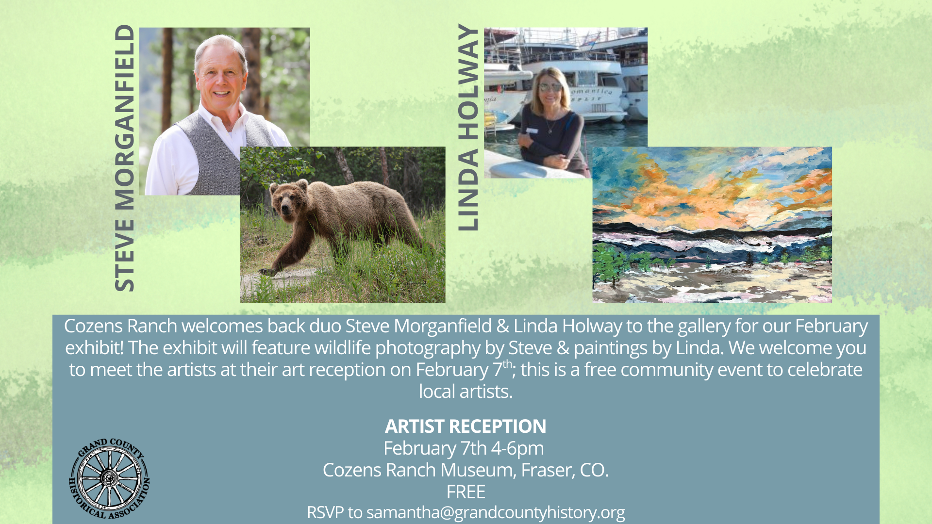 Cozens Ranch welcomes back duo Steve Morganfield & Linda Holway to the gallery for our February exhibit! The exhibit will feature wildlife photography by Steve & paintings by Linda. We welcome you to meet the artists at their art reception on February 7th; this is a free community event to celebrate local artists.