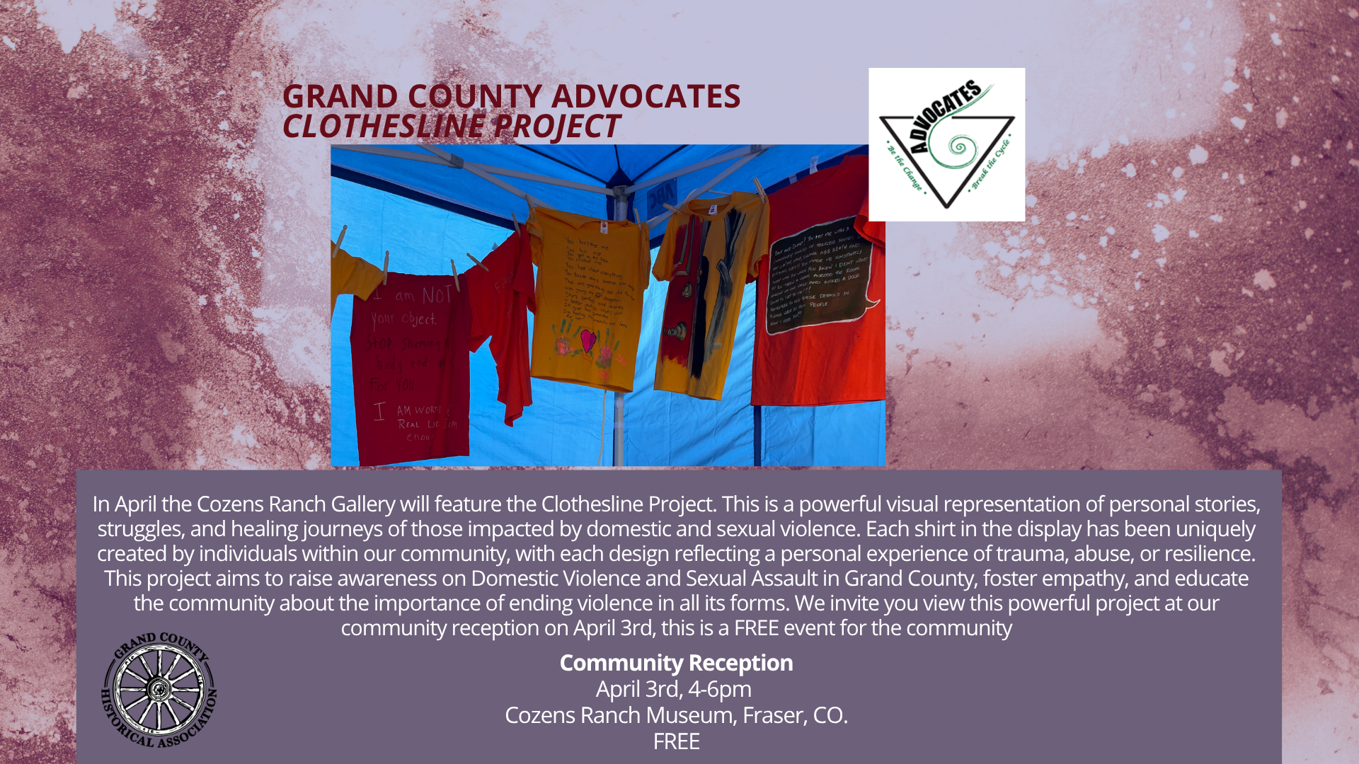 In April the Cozens Ranch Gallery will feature the Clothesline Project. This is a powerful visual representation of personal stories, struggles, and healing journeys of those impacted by domestic and sexual violence. Each shirt in the display has been uniquely created by individuals within our community, with each design reflecting a personal experience of trauma, […]